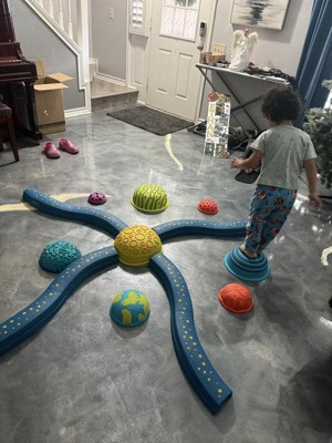 • Hop the Planets: Skip across the solar system with 8 curved beams and 8 textured planets as kids try to keep their balance in orbit with the sensory, active playset!