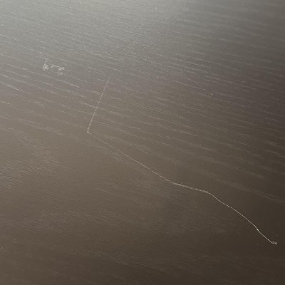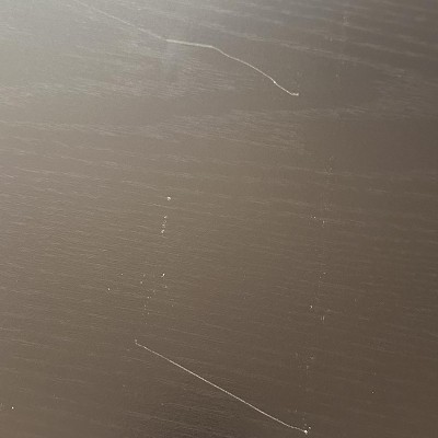 “Faux rattan” is printed on paper Multiple dents, scratches, chips, etc. Not sure it’s even worth the sale price /: