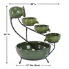 Create a relaxing atmosphere on your patio, deck, balcony or in your garden. This solar powered 4 tier cascading fountain is made of ceramic with a powder-coated steel frame. No wiring, simply install and enjoy. Note: Freezing causes damage. Do not leave outside in winter. Empty water and store whole unit indoors (shed/garage) before temps at night get low enough for frost.