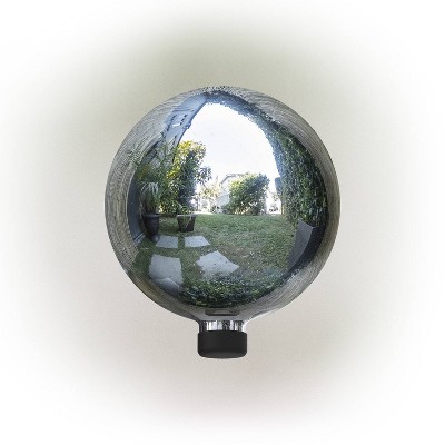 Alpine Corporation 10" Glass Striped Mosaic Gazing Globe Outdoor Decorative Globe Turquoise & Orange