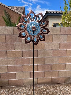 Alpine Corporation Antique Flower Kinetic Wind Spinner Stake: Iron Outdoor Art, 85" Height
