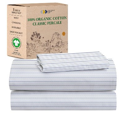 • Our sheet sets are composed of durable long-staple cotton with a crisp percale weave that gradually softens over time and are machine washable for easy care.