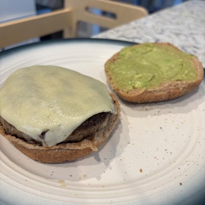 These burgers are awesome. I top them with carne asada before putting them on the grill. For those complaining about frozen burgers being stuck together, every brand of frozen burgers I get is like this. Here’s the secret. Take a butter knife and place it in between the frozen patties. Strike lightly with a hammer and voila-the burgers are separated.