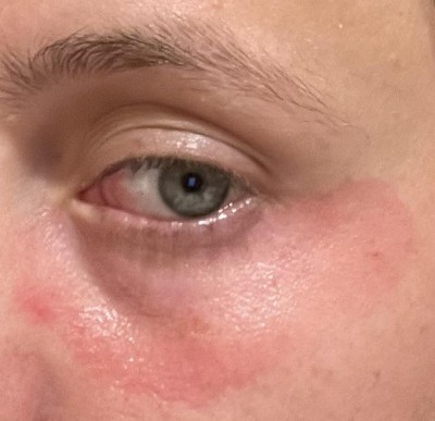 Product felt like it didn't even have serum on it, it was very dry, so I felt like it wasn't doing much so I ended up taking it off before the 30 min was up and I couldn't believe my skin. I've never reacted to another eye product like this. Almost an hour after taking off the patches the redness has not gone down. I'm just thankful I tried this for the first time at night and not at the start of my day.