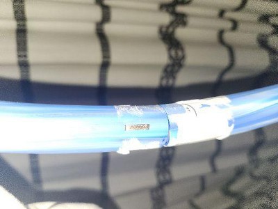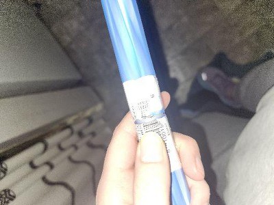 Gap in hula hoop covered by sticky barcode. The gap creates such a space that is sharp. There is a visoble staple in it too.