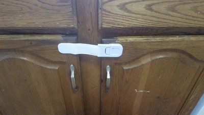 [This review was collected as part of a promotion.] We have been looking for a solution to our cabinets under the sink and this definitely solved the problem! As we all know toddlers are masters at getting in to any space and mine is no exception! We store a lot of chemicals and supplies under the sink in our kitchen so definitely want to keep those out of our exploring toddlers hands. We tried traditional cabinet locks that mount inside the door and the frame but we found that these did not catch well and often the mighty force of our toddler pulling allowed him to get them open anyways. We also tried a bungee cord however this was difficult to loop and, given the frequency we go in and out of this cabinet, it was not conducive to our needs. This latch was able to be installed quickly and even adjusted once before firmly pressing in to place. It stayed in place even with my force pulling on it. The latch connection makes it very easy to click and unclip or reclip as needed to get in to whatever you are latching. I think my favorite part, since it is under the sink, is that the plastic is easy to wipe down if anything falls on it or it gets wet or generally dirt from being in an area with cooking and food. It has held up very well so far through multiple tugs, yanks, and pulls from a rambunctious exploring toddler so I have zero complaints! I would definitely recommend to anyone looking for a safety solution for their toddler or for any reason at all.