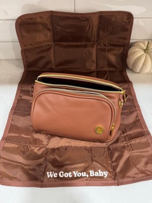 [This review was collected as part of a promotion.] I received this adult diaper waist pack in cognac, not black like above, which is a little disappointing since both my husband and I will share diaper duty and the black is a little more his speed, but still been excited for this addition to our baby toolkit. I'm currently in my third trimester so this review is based purely on the product itself and not how it works in actual use. The bag is pretty much an oversized fanny pack. It comes with a front zipper pocket that contains a changing pad which appears to be pretty easy to wipe down and clean, which I assume will come in handy. There's a back zipper pocket and a divider in the main pouch for more organization. My biggest concern is that the marketing I received with the pouch makes it look like you can store a bottle, diaper, pacifier, etc in the main pouch but based on the actual size, that seems more like wishful thinking. The way I imagine using this bag would be for a quick trip somewhere like the grocery store where an entire diaper bag would be overkill but you may want a few supplies in case of an emergency. The bag easily fits around my waist, with an adjustable strap and easy closure, or as more of a crossbody. You could even just throw it over one shoulder, although that wouldn't offer quite as much security. Overall, I'm really happy with this product based on my intended limited use of it and think it's a great extension of my larger diaper bag.