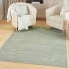 Invite relaxed style to your favorite spaces with this green textured rug from the Care Free Collection. The simple, solid background is marked by abstract lines in a high-low, cutout style design that adds an intriguing sense of depth. Made from easy-clean polypropylene fibers that feel incredibly soft to the touch, which is ideal for busy families with young kids and pets.