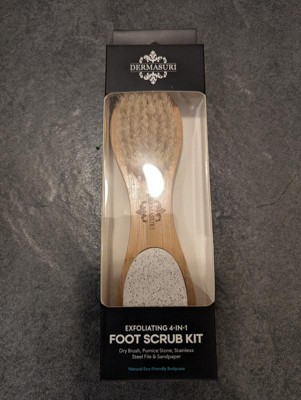 Dermasuri 4-in-1 Exfoliating Brush for Feet: Wooden Foot File, Pumice Stone