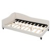 Twin/Full Size L-Shaped Linen Daybed with Solid Wood Legs, Beige/Gray, 4W -ModernLuxe
