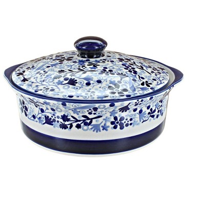 Cook, serve, and enjoy with this covered baker, a versatile piece that combines timeless artistry with everyday practicality. Measuring 9.38" in diameter and 2.75" deep. The matching lid helps lock in heat and flavor, ensuring your food stays warm and delicious all the way to the table. Each baker is handmade and hand-painted in Poland, decorated with vibrant, traditional patterns that make every piece a unique work of functional art. Crafted from durable, high-fired stoneware, it is celebrated for its even baking, excellent heat retention, and simple cleanup, making it as reliable as it is beautiful. Safe for the oven, microwave, dishwasher, and freezer, this baker blends heirloom-quality craftsmanship with modern convenience. Whether preparing a cozy family dinner or entertaining guests during the holidays, this covered baker transitions seamlessly from oven to table, offering both charm and long-lasting durability in every serving.