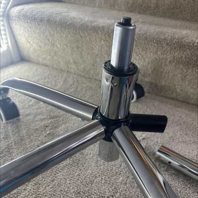 There is a reason why there aren’t many review pictures of this item. The gas rod does not lock into the base hole. I have assembled many chairs and this is the first time I have witnessed gas rod being not able to fit into the base. Huge safety issue. Glad other review confirmed my concerns; wish I had seen the review first. Needless to say, this item is getting returned. Glad I did not open the rest of the items yet. Boxing it again will be much easier. Bye!!!
