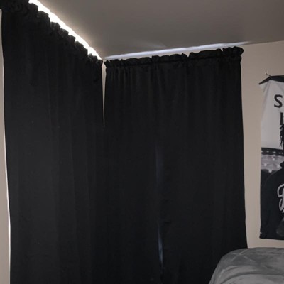 Pros: curtains are heavy and block out almost all light. The curtains are hung on window facing a south exposure (window to the left) and west exposure. The pics were taken at noon on a sunny day. The curtains are heavy and washed well. I air dried to avoid possible shrinkage. The folds and wrinkles ironed out easily. Would def recommend to anyone who is looking for a blackout curtain. I used the black ( in case you can’t tell by photo). Cons: the curtain panels measure 94” in length- not 95” as described. To the point of where the rod is inserted the rod pocket, they measure at a length of 92”. Luckily they all measured the same & I was able to use them all. My windows are 63” and the ceiling height is 8’.