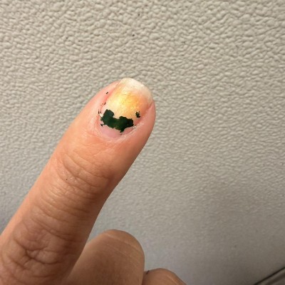 I bought this color for Saint Patrick’s Day the color is pretty and all but one the color started to peel off it made my finger nail yellow
