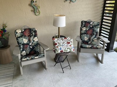 The Arden Selections outdoor chair cushion is a stylish and comfortable addition to any patio or outdoor space. Guests appreciate its vibrant colors, sturdy construction, and the elastic strap that keeps it securely in place. Many have found it easy to clean and durable against various weather conditions. With its perfect fit for adirondack chairs and other outdoor seating, this cushion enhances relaxation and enjoyment during outdoor gatherings.