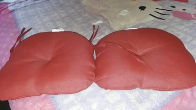 [This review was collected as part of a promotion.] Arden Selections - Arden Selections Outdoor Seat Cushion (4 Pack) 15 x 14.5, Ruby Red Leala are the butt cushion I have always wanted!! Perfect fit ties easy to the chair! We can take it off easily to save it from the rain! Perfect outdoor chair cushions!! Super comfortable, fluffy and durable!