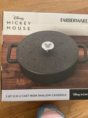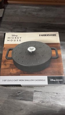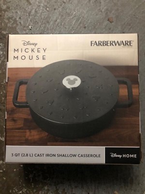 Farberware Disney Monochrome 3qt Pre Seasoned Cast Iron Shallow Casserole Black: Round Baking Dish, Lifetime Warranty