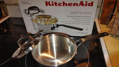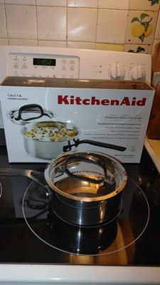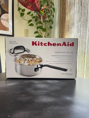 KitchenAid 1.5qt 5-Ply Clad Stainless Steel Induction Sauce Pan with Lid: Dishwasher-Safe Cooking Pot