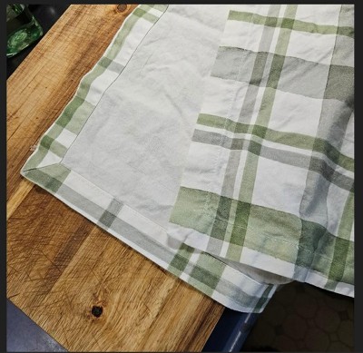 Nice napkin, feels soft after a washing, but a little wrinkly. This is not a woven plaid pattern, but rather a printed pattern, so when you turn it over, you don't see the plaid. However, it is very nicely hemmed. The color is true, IMHO. I'll keep these!
