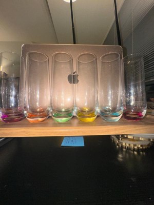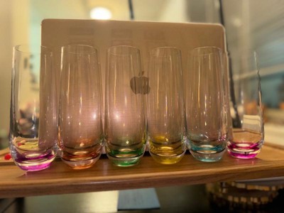 [This review was collected as part of a promotion.] I love this set of six gorgeous champagne glasses. They are very different with the colored hues on the bottom that make them so unique compared to just a plain clear glass. I like that they are stemless because they’re harder to knock over. Made of great quality glass. That’s easy to keep track of which one is yours by the different colors on the bottom. The colors really adds such a beauty when using. The color is mostly just on the bottom of the glass so it doesn’t take away from the clear glass towards the top and the bubbly champagne you use. I’ve gotten a lot of compliments when guests and family come over and use them.