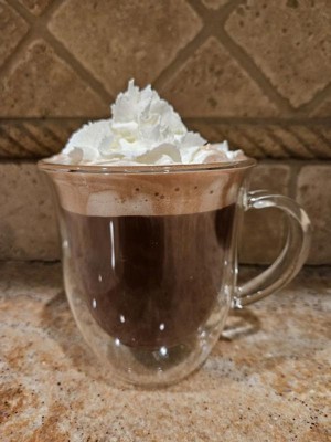 [This review was collected as part of a promotion.] I love the shape and design of these JoyJolt Serene Double Wall Insulated Glasses 13.5 oz Mugs. They're the perfect size for hot cocoa, coffee, or even a latte or cappuccino. The double insulated wall helps keep the outside of the cup cool to the touch while the inside still has your hot beverage. Even after pouring a fresh cup of piping hot coffee, the outside of my mug was just barely warm to the touch. I also love how the mug is clear. I think it gives it a nice appeal and it goes with any kitchen design.