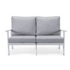 LeisureMod Walbrooke Modern Outdoor Loveseat – White Aluminum Frame with Removable Cushions, Weather-Resistant Seating for Patio, Deck & Balcony