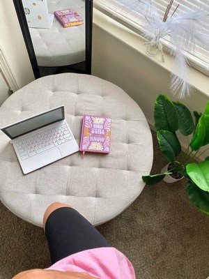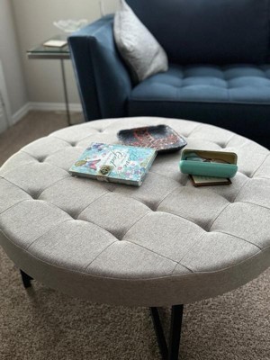 [This review was collected as part of a promotion.] Simple and stylish is this round,linen,tufted ottoman. This ottoman has a classic look and is the ideal choice for your living room or gathering area. It features quality linen upholstery for comfort and softness. The tufting on the ottoman makes this a classy addition to your space that will look great with the rest of your decor. In addition to being a perfect way to put your feet up while sitting in your favorite chair, this ottoman can serve as an extra seat or a coffee table if you place a tray or coasters on it. It will definitely add versatility to your space. Adjustable floor glides make moving easy. A sturdy iron frame delivers durability, as the ottoman can hold up to 250 lbs. Assembly is quick and easy, it took about 20 minutes to assemble. Cleanup can be done with a quick vacuuming or light brushing.
