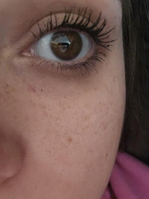 New favorite mascara. I have dry skin and need to wear oily products around my eyes to keep my skin hydrated, but that usually results in mascara getting everywhere and disappearing off my eyelashes. This stuff stays on all day with minimal smearing. One or two coats goes a long way. It will get lumpy if you wait too long between coats. Definitely lengthening and I think it looks really pretty.