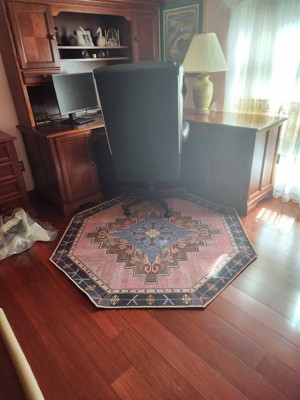 This rug is perfect! I needed a rug for a small space that didn’t extend under my desk and the octagon shape worked perfectly for that because the “corner” is cut off. Love the colors too!