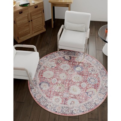 Unique Loom 3' 6 x 3' 6 Ariel Timeless Vintage Rust Red Round Area Rug
