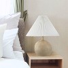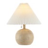 A modern take on mid-century Danish lamps, this vintage-inspired lamp features a heavy resin base and pleated, linen shade. Its timeless geometric style is perfect for a modern bedroom, living room, or entry. Includes an LED bulb for warm, bright light.