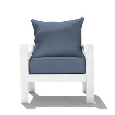 Honeycomb Outdoor Edisto Seat - Oak Aluminum Chair with Heathered Blue Deep Seat Cushions: Weather Resistant Modular Patio Lounge Furniture