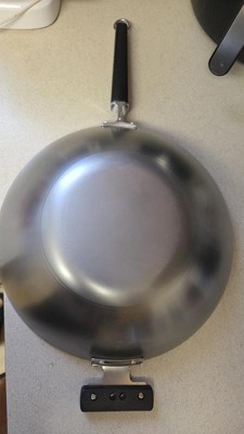 First off this wok is beyond heavy, not good. I follow instruction, boil etc and season pan. Everything was fine and I even use to deep fry wings which turn out great wings was nice and crispy. Next day when I did shrimp pasta this pan can’t handle tomatoes or tomatoe sauce. It’s apparently too much acidity for this cheap quality wok. Target should remove this item off this site. Do not buy!!