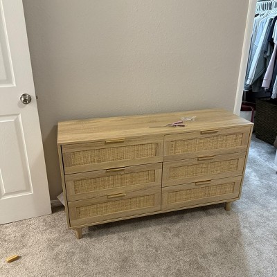 It's a great addition to my bedroom! The use of particle board and rattan creates a durable and visually appealing piece of furniture. The generous dimensions and drawer sizes make it a practical storage solution, and the overall weight of the dresser adds to its sturdiness. It's a stylish and functional piece that complements both my living room and bedroom seamlessly.