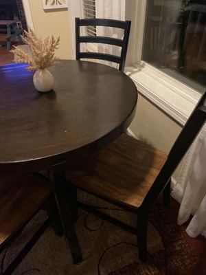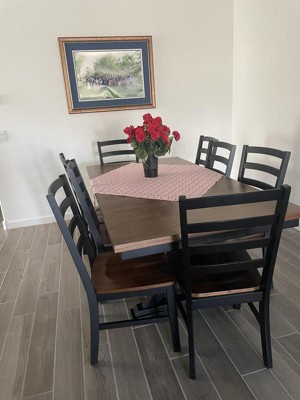 Raise the bar on modern farmhouse style with this dining side chair. Its casual good looks are accentuated with a handsome two-tone finish. A clean-lined silhouette with a modern ladderback design adds a fresh element, whether your style is vintage, country or eclectic. This richly crafted seating option serves up charm wherever folks decide to take a seat.