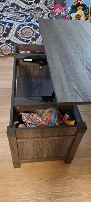 Overall I like this table but the only drawback is that the lift top is very hard to open and close. The springs are very stiff. I am hoping that they will get easier as time goes by. Also, because the top of the coffee table is so heavy with the lift top hardware and the bottom is so light, it slides around very easily. When it is opened and closed it pushes back and forth. Overall I like it and I wanted a gray coffee table so it is the best option I could find but I do think it is a bit expensive for what it is