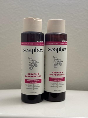 [This review was collected as part of a promotion.] The Soapbox Keratin and Raspberry Seed Oil Smoothing Shampoo & Conditioner cleans well without over-drying, and the conditioner provides decent moisture. The keratin helps maintain hair strength and overall health. The smell is light and pleasant without being overpowering. However, while my hair looks shiny and healthy, it doesn’t fully deliver on the "smoothing" claim. Frizz remains noticeable, especially in humid conditions.