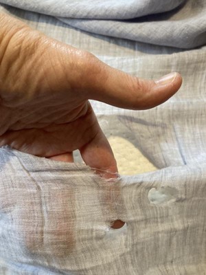 Used these sheets a few times last summer. Got them out for this summer, and within a few days, found not one but three big holes in the bottom sheet. Don’t buy. It’s like tissue paper.
