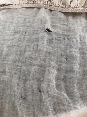 I purchased the entire set of garment washed linens in pale flax and the blue in February 2022. The fabric is thin but soft and comfortable. The sheets were used every other week and washed every other week as well. That is 18 washes. The bottom sheet fall apart. I would expect at least a year’s worth of use out of it. Now I have an entire set with no bottom sheet and concerns about the other set lasting.