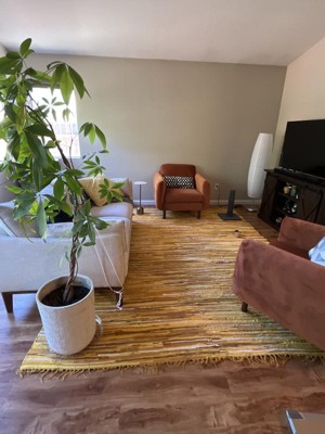 I was expecting a yellow rug, but the version i received has lots of gold and dark brown mustard in it with some hot pink and lime green. It was a good deal and i’ll try to make this work, but if you’re wanting/needing a rug that looks really close to the picture provided- I would skip this rug…
