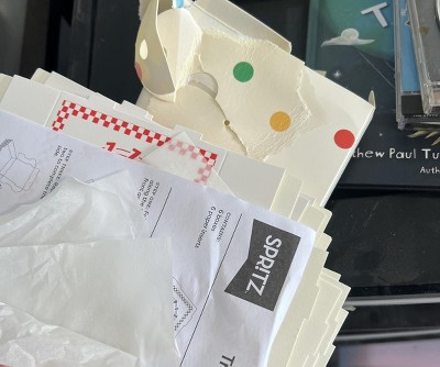 These are the spritz pizza box shaped treat boxes. They come six in a package which is great for a smaller party with just a couple of kids, or could be used at an adult party with a fancy dessert or gift card inside. They are very easy to assemble however they are smaller than expected. I imagined using these treat boxes as a “goody bag” however they would really only fit a small matchbox car. They are about an inch deep and no larger than 4x4. I received an incentive to write this review.