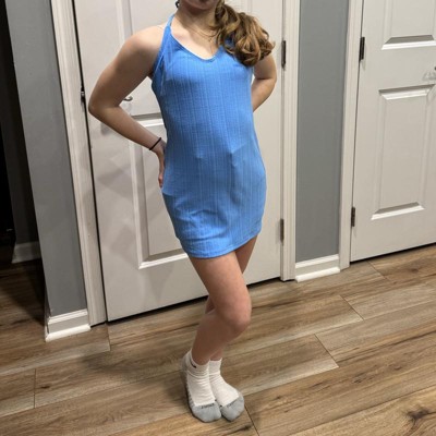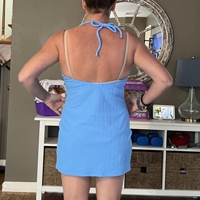 Women's Halter Tie Terry Textured Swim Cover Up Mini Dress - Wild Fable™ Blue X: Recycled Polyester, Spandex, Pullover, Breathable Fabric