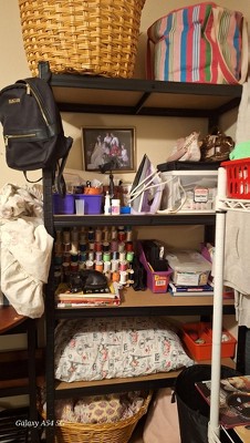 This wall unit is pretty sturdy for my every day pack of items. I have sewing machines big bags with different items. For me serves as working station as much as an storage unit. One feaature is that the shelves can be adjusted as the height you need.