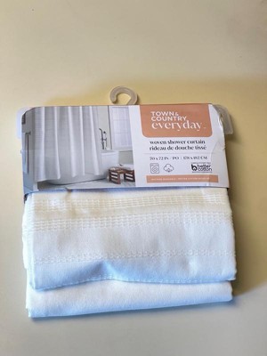 [This review was collected as part of a promotion.] I noticed straight out of the box that this would be a high quality item. With the cloud like softness of the fabric and the bright white color with the subtle texture.. it made my super small bathroom look large and airy! It’s simple but simply perfect. I did not receive grommets with the item so I am unable to review on those but overall the shower curtain itself is a must buy! I will be buying another for my other bathroom. Town and Country Everyday has me hooked! Can’t wait to explore the rest of their products