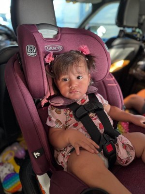[This review was collected as part of a promotion.] We got this car seat to replace the infant carseat we had been using for the first 10ish months. Our little one has been happy to have more space and I love the turning function. Overall great! The only challenge is doing car seat feed is tough with the cup holders, but hopefully one of these days car rides will get easier for our little one and I won't need to breastfeed in the carseat anymore.