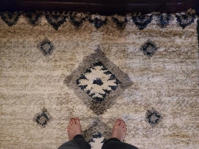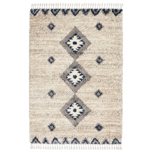 Nourison Oslo Shag Diamond Machine Woven Indoor Area Rug Ivory/Blue