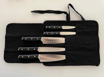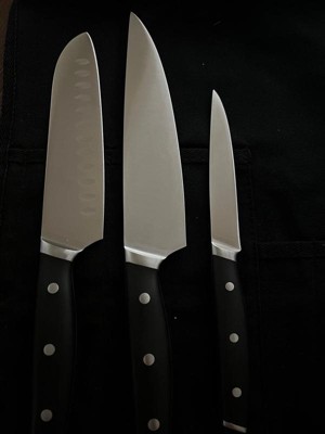 [This review was collected as part of a promotion.] These are my new favorite knives. I had bought what I thought were good quality knives before, I now know they were not high quality. These are amazing! They have a comfortable handle they are so sharp. I will be buying more knifes in this brand to complete my collection and be getting rid of all my other knifes. Highly recommend! The carrying wrap is nice but I would spend more to buy a set with it.