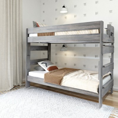 Plank+Beam Solid Wood Farmhouse Twin over Twin Bunk Bed Bed with Storage Drawers, Driftwood