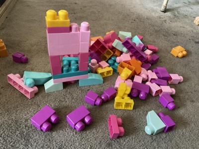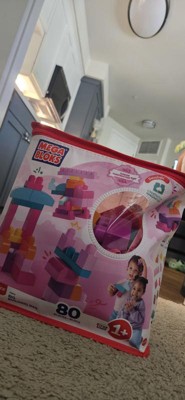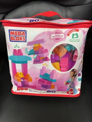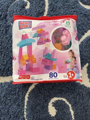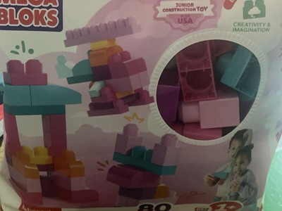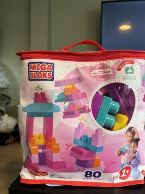 MEGA BLOKS First Builders Big Building Bag Toy Blocks with Pink Storage Bag for Toddler - 80pc