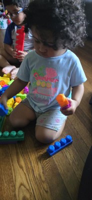 [This review was collected as part of a promotion.] We love Mega Blocks! They are easily one of our favorite toys. I love that the colors are so vibrant and bright. We did order the more “girly” color set and received the regular color set but that’s a non issue for me. Right now our little one is more about banging them together and drooling on them than building but they are super easy to clean! Can’t wait to see what we can create as these blocks will last forever.